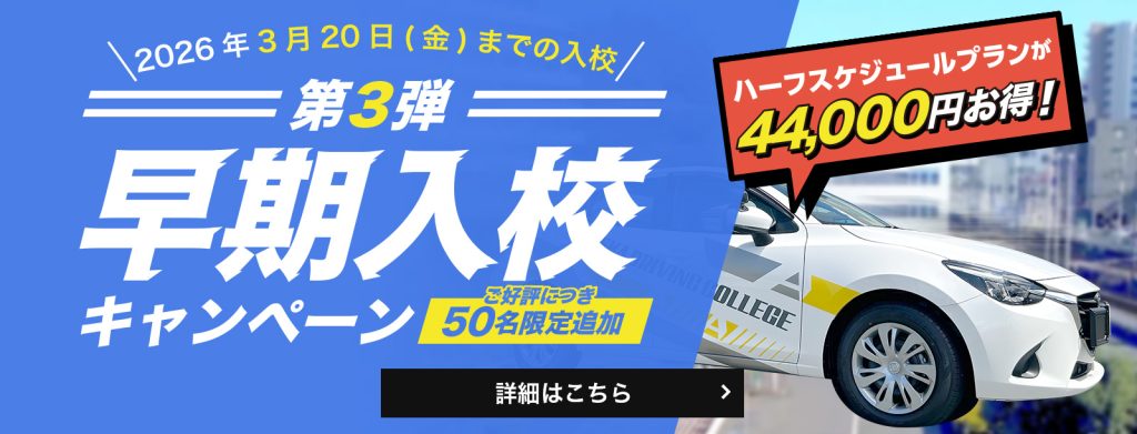 降雪や道路状況等により、教習中断・中止となる場合がございます。