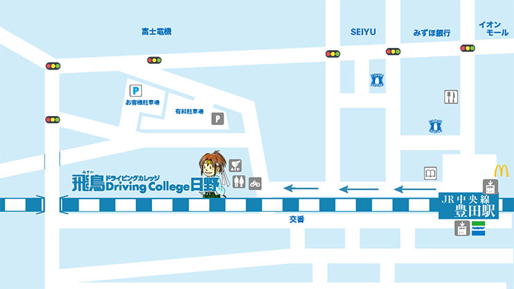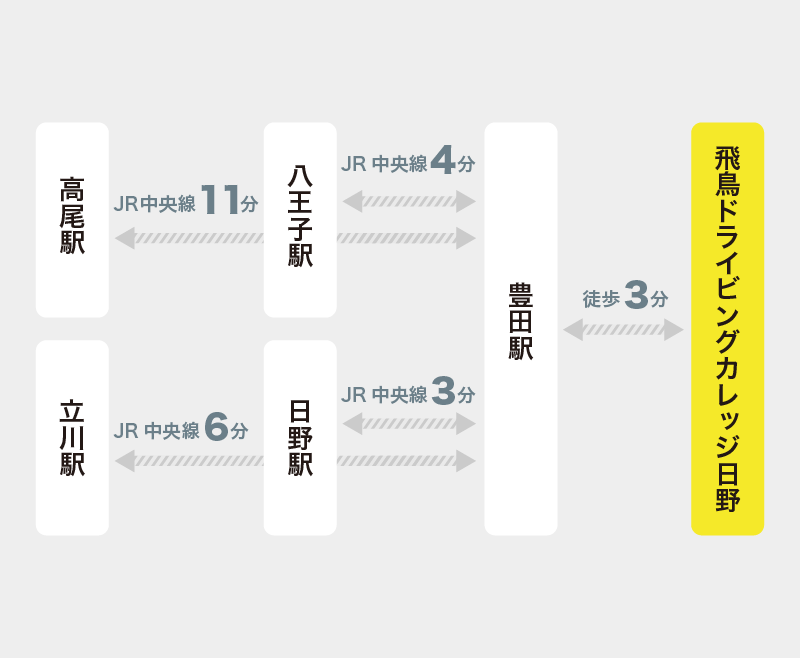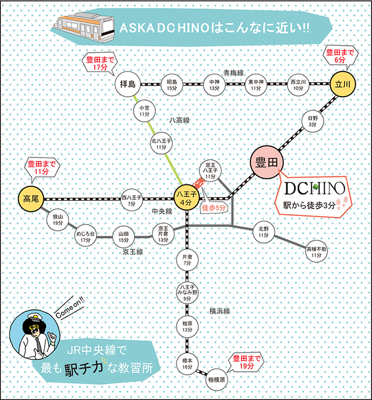 JR八王子駅から中央線を使えば7分で教習所に到着!!