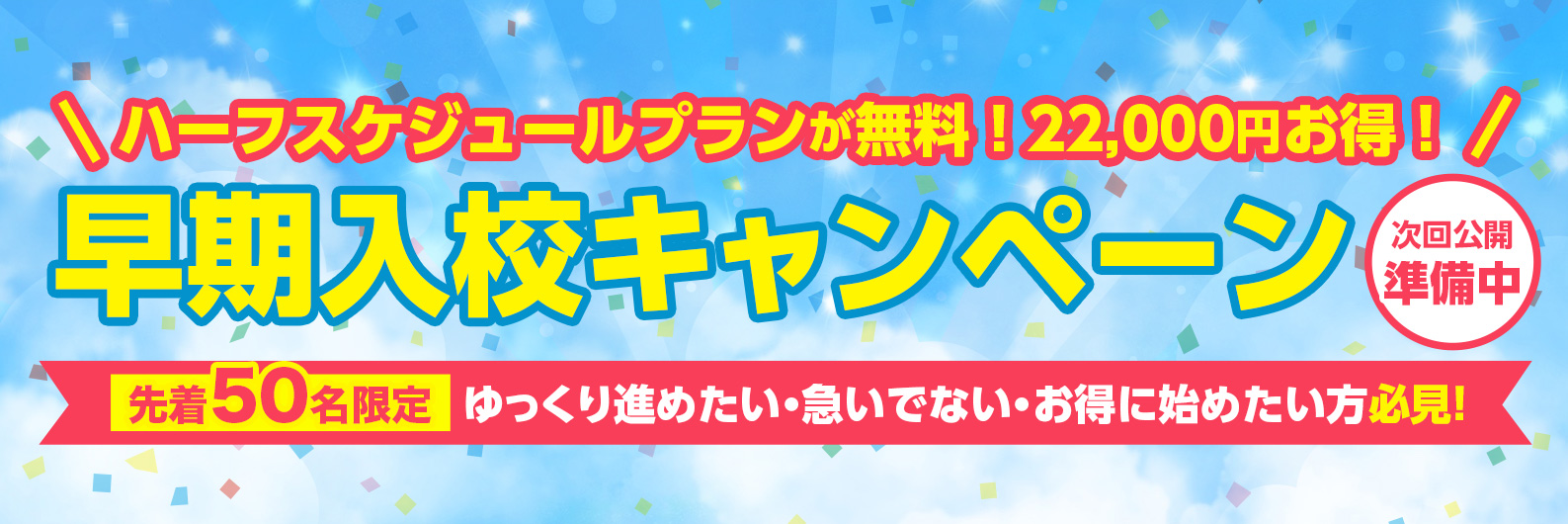 早期入校キャンペーン 飛鳥ドライビングカレッジ日野早期入校キャンペーン 次回準備中 資料請求・来校予約はこちら042-581-2721受付時間: 8:00~20:00(土祝19:00・日18:00)資料請求はこちら入校手続き・来校予約はこちら