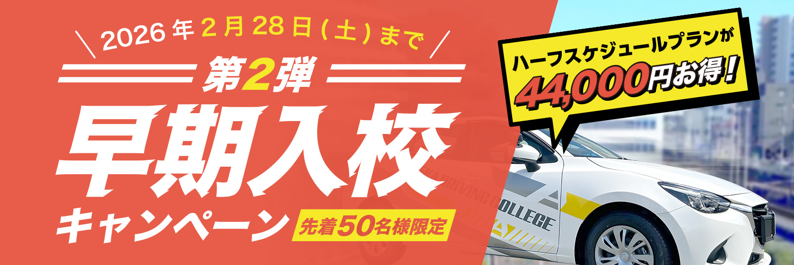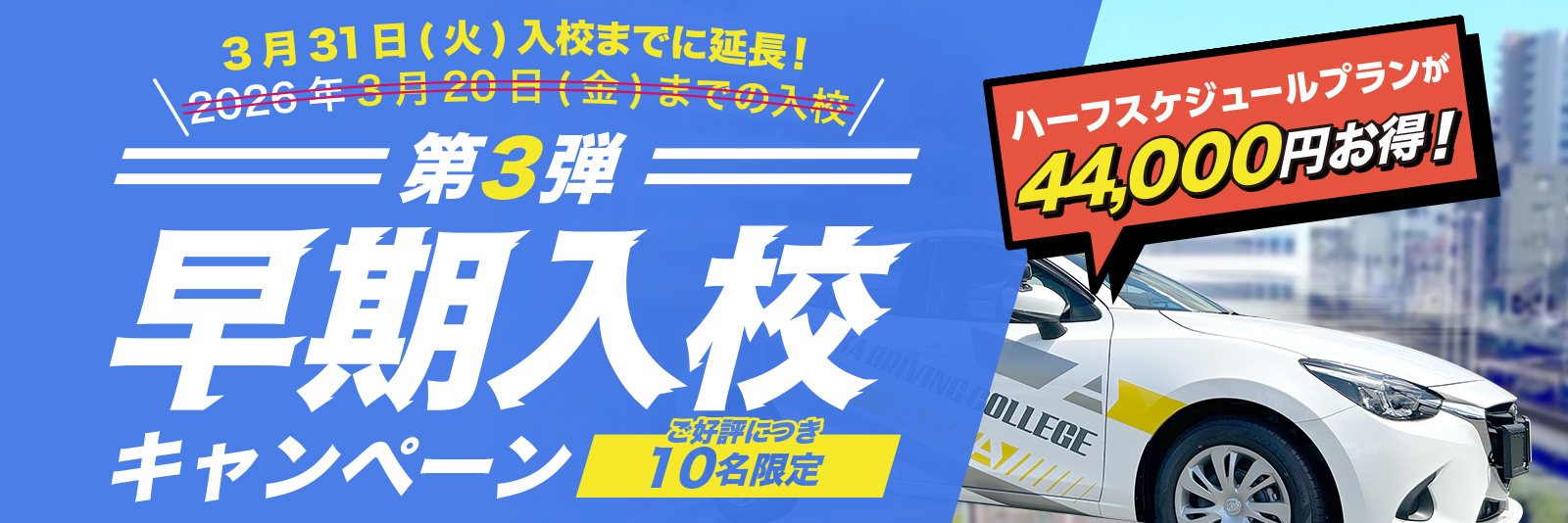 早期入校し、混雑時期後から教習を開始する方が対象のキャンペーンです。