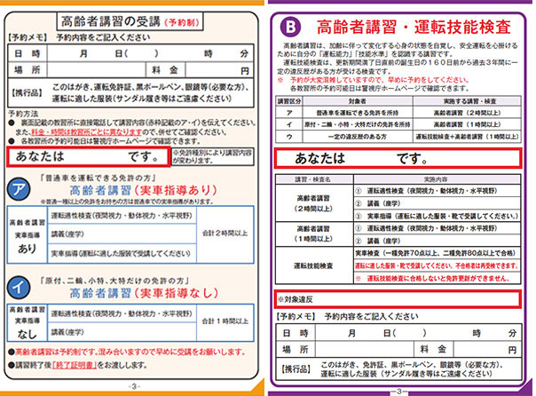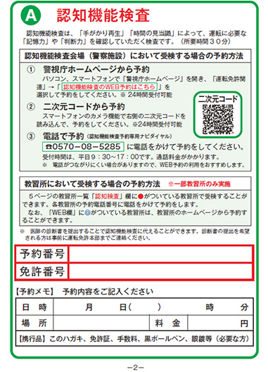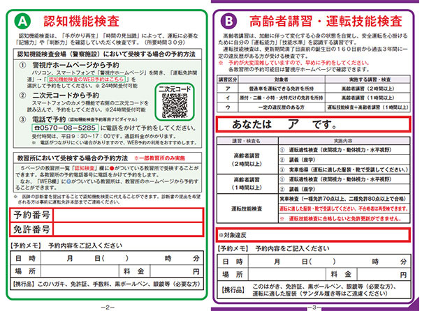 認知機能検査と⾼齢者講習「ア」をセットで予約(75歳以上)