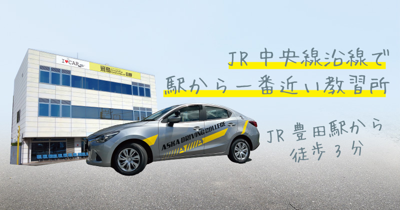 JR豊田駅から徒歩3分の好立地で通いやすい教習所です。