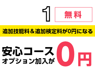 1度で技能教習や検定が通らなかった場合に追加で発生する料金が無料になる安心コースを無料で提供します。