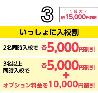 ※3名以上同時⼊校のオプション料⾦割引は②オプション割と併⽤できます。