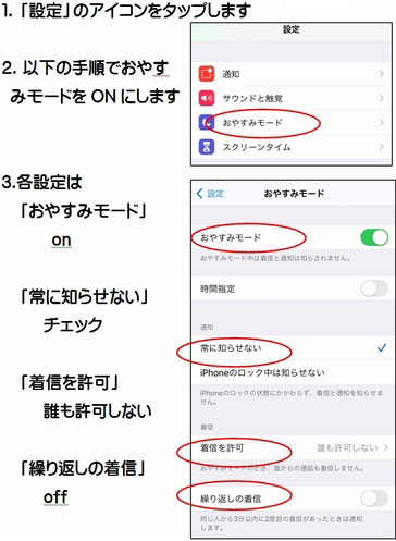 受講後は「おやすみモード」・「サイレントモード」は解除しましょう。