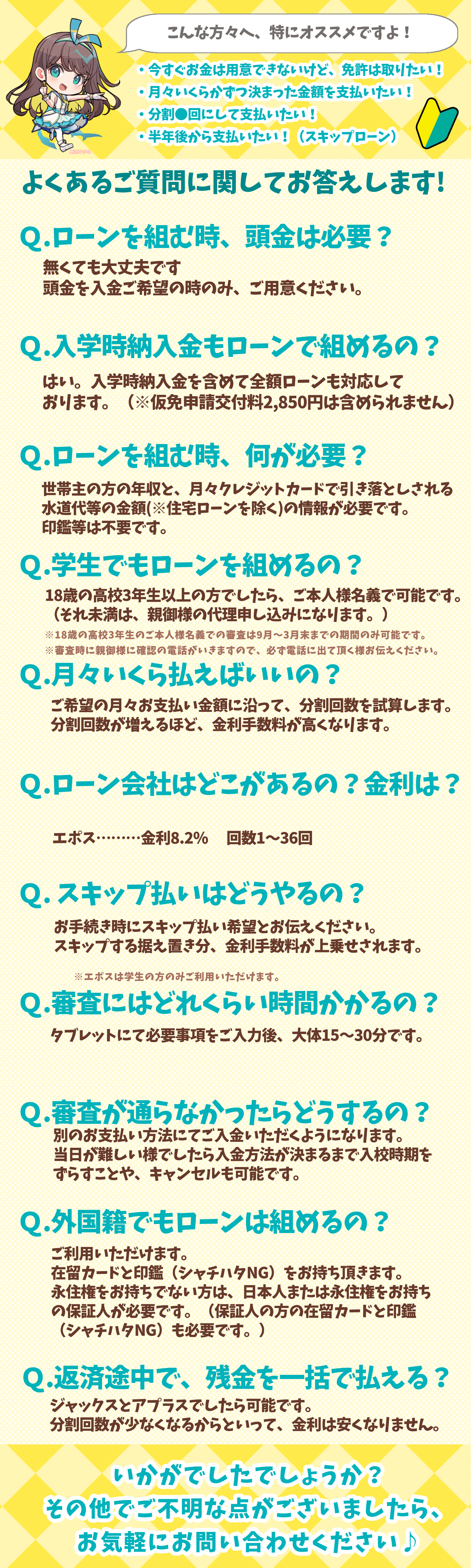 キャン待ち+3Hプランのみ、入学時納入金+【2】と【3】の費用でお手続きが可能です。