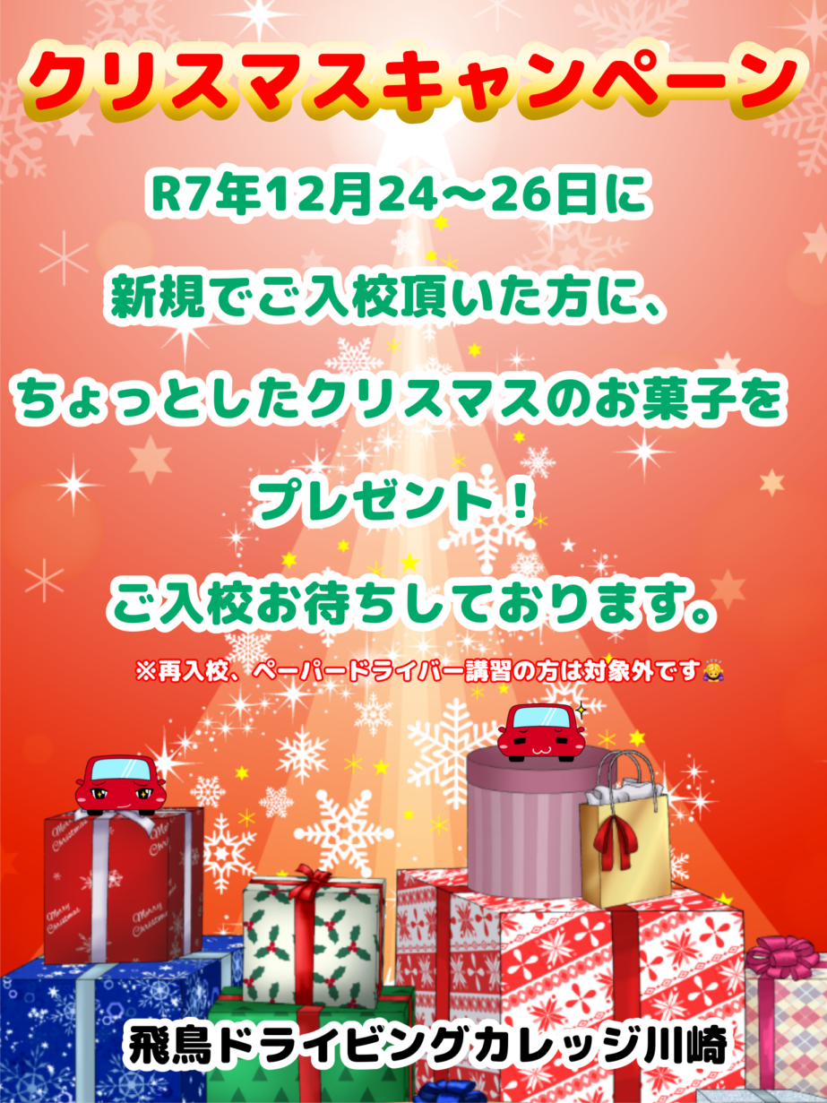令和7年12月24~26日ご入校手続きの方に、クリスマスプレゼント!